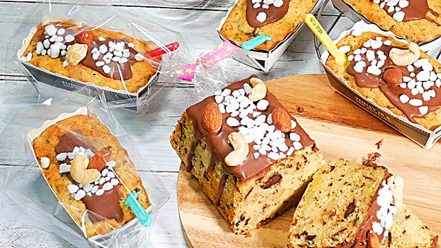 ひろまる スイーツメーカー No Twitter チョコバナナたっぷりパウンドケーキ バレンタインラッピング パウンドケーキ にバナナとチョコレートをたっぷりと入れて焼いたしっとりパウンドケーキです 100均の可愛い紙型に入れておしゃれにラッピングをすると